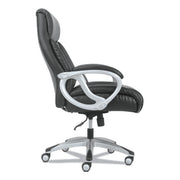 Classic black leather and a silver frame make the Sadie 3-Forty-One big and tall chair perfect for executive spaces. Customize your comfort with an adjustable tilt lock and seat height. Fixed padded arms provide valuable upper body support, and 360-degree swivel enable total freedom of movement.