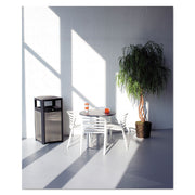Attractive container helps manage waste and litter, indoors or out. Strong steel frame and decorative, galvanized steel panels provide the right in any first impression area. Four-sided opening makes it easy for pedestrians to drop their waste in passing. No assembly required and includes rigid plastic liner.