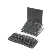 Adjustable stand positions laptop at personalized viewing levels, reducing glare and eye fatigue. Unique design allows unit to fold flat for portability. Durable steel mesh construction provides strength and stability while blending into any workspace décor.