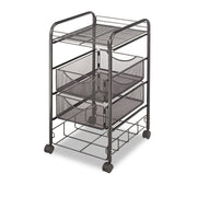 Safco Onyx Mesh Mobile File with Four Supply Drawers, Metal, 1 Shelf, 4 Drawers, 15.75" x 17" x 27", Black