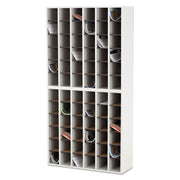Study sorter made of 3/4" compressed wood with adjustable hardboard dividers. Stacks up to two high. Black plastic molding accent doubles as a label holder (labels included). Durable laminate finish complements any setting. Solid fiberboard back provides stability.