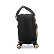 A luxe athleisure vibe is punctuated with gold toned hardware and handbag treatments, giving the product a sartorial flair. Feminine tailored shape, exposed zippers, and thoughtfully expressed organization, elevate our Mobile Solution Mobile Office from practical and functional to savvy and sophisticated. Features front organization pocket, dedicated packing compartment, wireless charging pocket and USB charging port. A padded compartment holds laptops up to 15.6" and an additional pocket can store a tablet. Multi-directional dual spinner wheels for easy mobility.