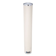 No wasted counter space! Wall mounted style; top loading with removable cap. Self-adjusting to eliminate cup damage. Holds 120 4- to 10-oz. cups. Unbreakable polyethylene.