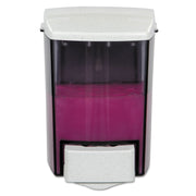 Versatile dispenser may be used in conjunction with three separate delivery systems: bulk liquids and gels, bag-in-box cartridges or bag refills. Accommodates bulk lotion soap and gel hand sanitizer in most 800ml bag-in-box cartridges. Includes "Hand Sanitizer" sticker for labeling dispenser. Break-resistant plastic shell easily mounts to walls.