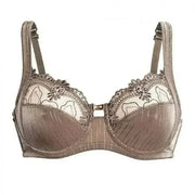 Semi sheer full figure fit bra by Sassa Mode. Part of Sassas Miracle collection, this fashionable wonder features three-part seamed cups, which combine beautifully embroidered soft sheer tulle, a rich jacquard stripe fabric reminiscent in pattern and luster to silk dupoini and cotton lining to augment shaping and support, while keeping the look light.