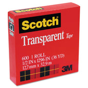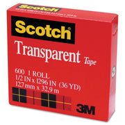 Scotch Transparent Tape, 1" Core, 0.5" x 36 yds, Transparent