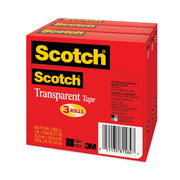 Scotch Transparent Tape, 3" Core, 1" x 72 yds, Transparent, 3/Pack