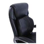 Pivot Reactive Ergonomic Support, PRESS, back health technology is a fully articulating backrest that offers continuous lumbar support at any back angle. SertaPedic® comfort support system with layers of molded foam, memory foam, and pocket coils. Upholstered in black commercial grade bonded leather. Pneumatic lift with tilt tension adjustment and lockout feature. Five-star nylon base with casters for easy mobility. Supports up to 400 lbs.