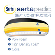 Active Contoured Ergonomic Support (ACES) provides support while perching to support your back at any sitting position. SertaPedic® comfort support cushion system with memory foam and pocket coils. Upholstered in a durable Culp fabric. Height adjustable arms for custom comfort. Pneumatic lift with tilt tension adjustment and lockout feature. Five-star nylon base with casters for easy mobility. American Chiropractic Association endorsed office seating.