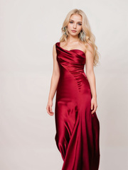 Sexy one shoulder pleated bodice mermaid silky satin prom dress