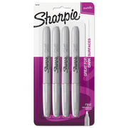 Sharpie Metallic Fine Point Permanent Markers, Fine Bullet Tip, Metallic Silver, 4/Pack