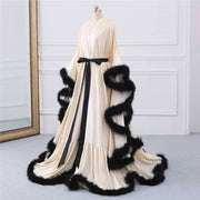 Step into a world of elegance with ourĀ Silky Satin Victorian Feather Fringe Robe Dress. Crafted from luxurious silky satin, this robe features a stunning feather fringe hem that adds a touch of drama and sophistication. Its Victorian-inspired design makes it ideal for costume parties, holiday gatherings, or elegant evenings at home.