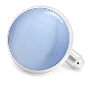 Step up your accessories with this pair of simple yet stylish Silver and Blue Catseye Cufflinks. Featuring a stunning blue catseye fixture that changes appearance with the light, this set is sure to set you apart from the crowd. The expert craftsmanship of our base metal cufflinks ensures long-lasting durability.