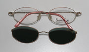 A set of optional sunglass clip-on lenses is included. Clip-ons are a convenient and affordable way for eyeglass users to shield their eyes from the sun's damaging rays and blinding glare. Clip-on sunglass lenses offer great flexibility for those who do not want to invest in two separate pairs of glasses. They clip on and off easily, usually with one hand.