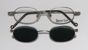 A set of optional sunglass clip-on lenses is included. Clip-ons are a convenient and affordable way for eyeglass users to shield their eyes from the sun's damaging rays and blinding glare. Clip-on sunglass lenses offer great flexibility for those who do not want to invest in two separate pairs of glasses. They clip on and off easily, usually with one hand.