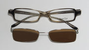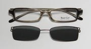 A set of optional sunglass clip-on lenses is included. Clip-ons are a convenient and affordable way for eyeglass users to shield their eyes from the sun's damaging rays and blinding glare. Clip-on sunglass lenses offer great flexibility for those who do not want to invest in two separate pairs of glasses. They clip on and off easily, usually with one hand.