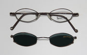 A set of optional sunglass clip-on lenses is included. Clip-ons are a convenient and affordable way for eyeglass users to shield their eyes from the sun's damaging rays and blinding glare. Clip-on sunglass lenses offer great flexibility for those who do not want to invest in two separate pairs of glasses. They clip on and off easily, usually with one hand.