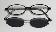 A set of optional sunglass clip-on lenses is included. Clip-ons are a convenient and affordable way for eyeglass users to shield their eyes from the sun's damaging rays and blinding glare. Clip-on sunglass lenses offer great flexibility for those who do not want to invest in two separate pairs of glasses. They clip on and off easily, usually with one hand.