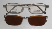 A set of optional sunglass clip-on lenses is included. Clip-ons are a convenient and affordable way for eyeglass users to shield their eyes from the sun's damaging rays and blinding glare. Clip-on sunglass lenses offer great flexibility for those who do not want to invest in two separate pairs of glasses. They clip on and off easily, usually with one hand.