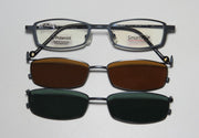 A set of optional sunglass clip-on lenses is included. Clip-ons are a convenient and affordable way for eyeglass users to shield their eyes from the sun's damaging rays and blinding glare. Clip-on sunglass lenses offer great flexibility for those who do not want to invest in two separate pairs of glasses. They clip on and off easily, usually with one hand.