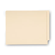The industry standard for efficient shelf filing. These folders feature a 0.5" wide reinforced tab for strength, embossed lines for easy label application and an undercut front panel for label readability. Popular for medical, dental and hospital filing as well as for large records management systems in financial and insurance firms. Scored for 0.75" expansion.
