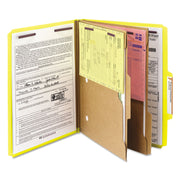 Smead 6-Section Pressboard Top Tab Pocket-Style Classification Folders with SafeSHIELD Fasteners, 2 Dividers, Letter, Yellow, 10/BX