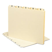 Break your file drawers into easily spotted smaller groups with these alphabetic signposts. Reduce filing time by locating desired area without reading the file labels. Choose economical manila for archives and sturdy pressboard for active files. Flat metal tabs are best for heavy and frequent use. Alphabetic (A-Z) 1/5-cut tabs. Made of heavyweight material for extra durability.