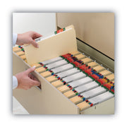 Neatly file bulky records, manuals, catalogs, telephone books or reference books. Box-bottom expansion more easily accommodates substantial files and materials. A sturdy reinforcement strip helps keep contents upright, while preventing the enclosed materials from bulging. Coated rod tips allow for smooth gliding within hanging-file racks.