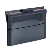 Saves desk space by utilizing often overlooked wall space. The six cascading pockets are removable to make viewing and access to documents easy. An elastic cord closure allows for secure and easy transport. Colored pockets each hold 50 sheets. Clear pocket on front allows for extra storage. Convenient loop on top for easy hanging. Durable poly material is tear- and moisture-resistant. Blank label sheet included.