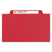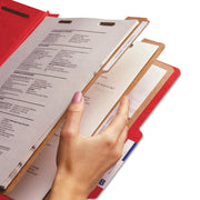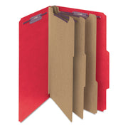 Smead Eight-Section Pressboard Top Tab Classification Folders with SafeSHIELD Fasteners, 3 Dividers, Legal Size, Bright Red, 10/Box
