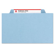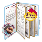 Smead Eight-Section Pressboard Top Tab Classification Folders with SafeSHIELD Fasteners, 3 Dividers, Letter Size, Blue, 10/Box
