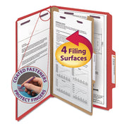Smead Four-Section Pressboard Top Tab Classification Folders with SafeSHIELD Fasteners, 1 Divider, Legal Size, Bright Red, 10/Box