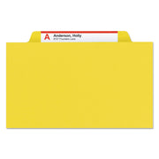 Smead Four-Section Pressboard Top Tab Classification Folders with SafeSHIELD Fasteners, 1 Divider, Legal Size, Yellow, 10/Box