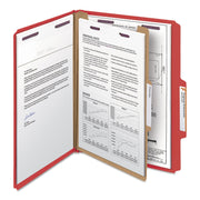 Smead Four-Section Pressboard Top Tab Classification Folders with SafeSHIELD Fasteners, 1 Divider, Letter Size, Bright Red, 10/Box