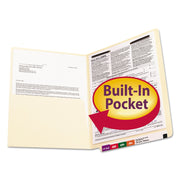 This fastener folder comes with the added feature of a fully-enclosed pocket that can be used to store small objects or papers that cannot be two-hole punched. The pocket has an extended thumb cut for easy access to pocket contents. Two filing surfaces with fasteners allow you to subdivide and secure your documents. The folder features a straight-cut tab for color-coded indexing. The tab is also reinforced, putting extra strength where you need it most.