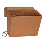 Organize large amounts of paperwork that need to be transported quickly, or file material without a file cabinet in this heavy-duty kraft organizer. Reinforced with poly tape at top for extra durability. Double-thick front and back panels with heavy reinforcement liner board. Each of the 21 pockets expands to 7/8". Protective flap with elastic cord secures documents.