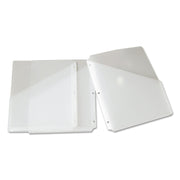 Easily organize papers into three-ring binders without punching them. Diagonal slash pockets on both sides keep documents safe and sound, and make it easy to pull them out when needed. Durable poly material is tear and water resistant and easy to clean. Letter size (9.25" W x 11.25" H) poly slash file jackets. Acid free and PVC free.