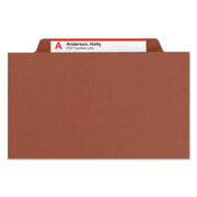 Smead Pressboard Classification Folders with SafeSHIELD Coated Fasteners, 2/5 Cut, 1 Divider, Legal Size, Red, 10/Box