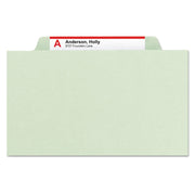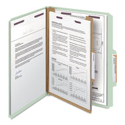 Smead Pressboard Classification Folders with SafeSHIELD Coated Fasteners, 2/5 Cut, 1 Divider, Letter Size, Gray-Green, 10/Box