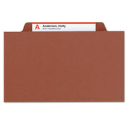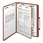 Smead Pressboard Classification Folders with SafeSHIELD Coated Fasteners, 2/5 Cut, 1 Divider, Letter Size, Red, 10/Box