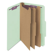 Smead Pressboard Classification Folders with SafeSHIELD Coated Fasteners, 2/5 Cut, 3 Dividers, Legal Size, Gray-Green, 10/Box