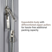 - Expandable body with differentiated zipper pullers for hassle-free additional packing capacity