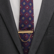 Our gold-plated stainless steel tie clip with an attached chain has been polished to a high shine, forming the perfect accessory for your formal wardrobe. The spring-loaded backing will keep your tie securely in place while also bringing back a classic look. Our tie clip will stand up to wear and maintain its sleek, shiny look thanks to being crafted from durable stainless steel. Pairs beautifully with any of our polished stainless steel cufflinks.