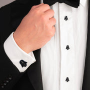 The ultimate in Star Wars fan accessories, these detailed Darth Vader cufflink studs have been carefully crafted in 3D metal and coated in matte black enamel. The fixed backing features a debossed logo of the Empire on the reverse side. Experience the Dark Side with our expertly crafted plated base metal studs. They are built to withstand the tests of galactic events, infused with the Sith, and ready to accompany you on interstellar orders. Pairs perfectly with our 3D Darth Vader Cufflinks. Officially licensed by LucasFilm LTD.