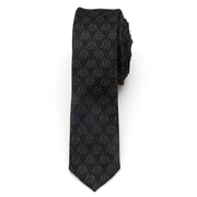 A modern look for the modern Star Wars fan. Only 1.5" wide, this 100% silk skinny tie has rows of Darth Vader helmets marching across the weave in neat rows. Sewn carefully to ensure a smooth knot, this men's skinny black tie also features the Star Wars logo on the reverse. Officially licensed by Lucasfilm LTD.