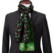 Perfect for a cool Fall or chilly Winter's night, this extremely soft black wool scarf features motifs of Grogu's smiling face alternating with green holly leaves and red berries, giving a festive feel. The bright colors are accentuated and draw the eye due to the black base. Our scarf will keep you cool and comfortable without irritation thanks to the soft Merino Wool. Officially licensed by LucasFilm LTD.