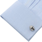 Since members of the Mandalorian guild never take off their helmets, we figured they deserved a tribute. Our 3D Mandalorian Cufflinks feature Mando's helmet set in shiny silver. Black detailing adds dimension to the aesthetic of the cufflink. The swivel closure features a debossed mythosaur skull on the reverse side. Experience the Way of the Mandalore with our expertly crafted stainless steel cufflinks. They are built to withstand the challenges of bounty hunting across the galaxy, infused with the honor of Mandalorian creed, and ready to accompany you on interstellar hunts. Pairs perfectly with our 3D Mandalorian Helmet Studs. Officially licensed by LucasFilm LTD.