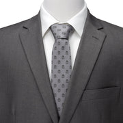 Members of the Mandalorian Guild are known for never taking off their helmets, so we thought they deserved a tribute. 100% pale gray silk forms the background for a series of subtle charcoal gray helmet icons, making this tie the ideal accessory when a real helmet isn't available. Officially licensed by Lucasfilm LTD.