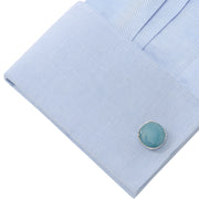 Sterling Silver Classic Formal Aquamarine Jade Cufflinks