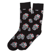 Celebrate The Day of the Dead with our calavera-inspired sugar skull socks. Decorative sugar skulls are sprinkled throughout and set against a pure black background, while a cushiony-soft band across the calf helps keep your black skull socks in place all day. This bold look can be worn alone or with any of our other sugar skull-themed accessories.